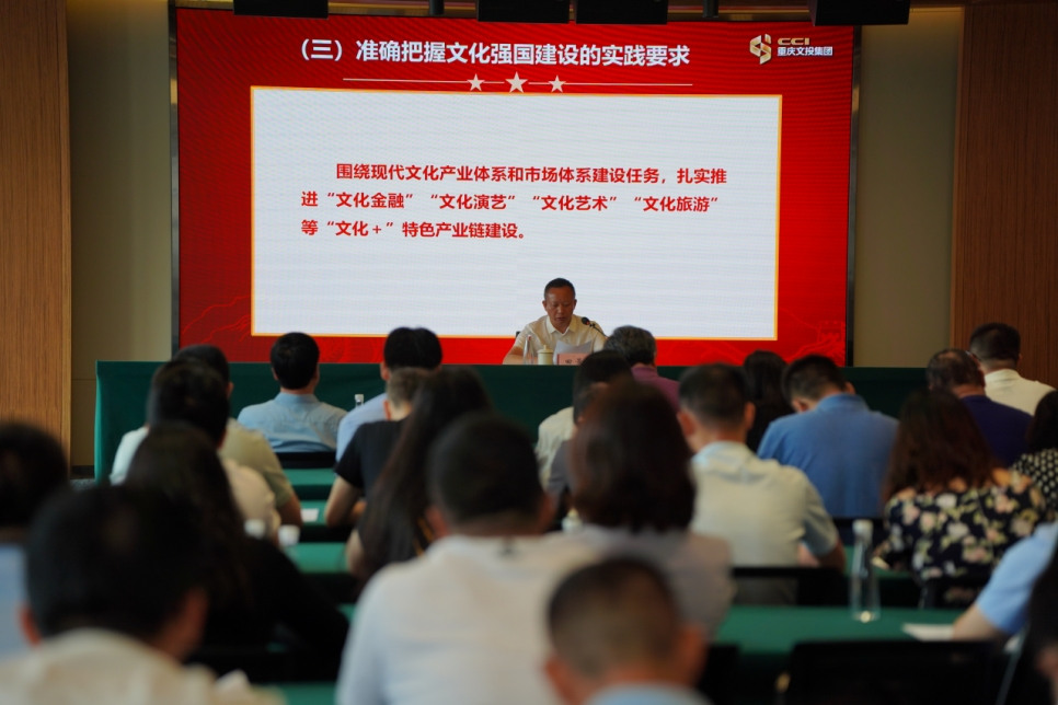 6月30日上午,按照中央、市委开展学习贯彻席大大新时代中国特色社会主义思想主题教育统一部署和市委组织部、市委宣传部工作要求,雷火电竞平台集团党委副书记、总经理田景斌以“深入学习贯彻席大大新时代中国特色社会主义思想,大力推动集团‘文化+’产业链高质量发展”为主题讲授专题党课,这是集团主题教育暨今年“党课开讲啦”活动第2堂专题党课。集团党委班子成员,全体党员,本部全体干部、子公司经营班子成员、集团派驻控股子公司负责人参加学习。市委宣传部主题教育巡回指导一组有关同志到会指导。