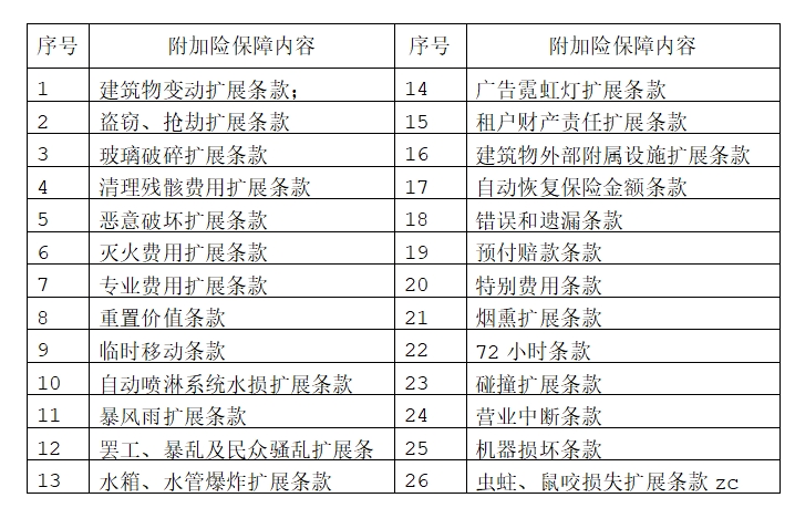 (三)附加险保障内容: